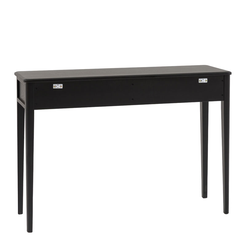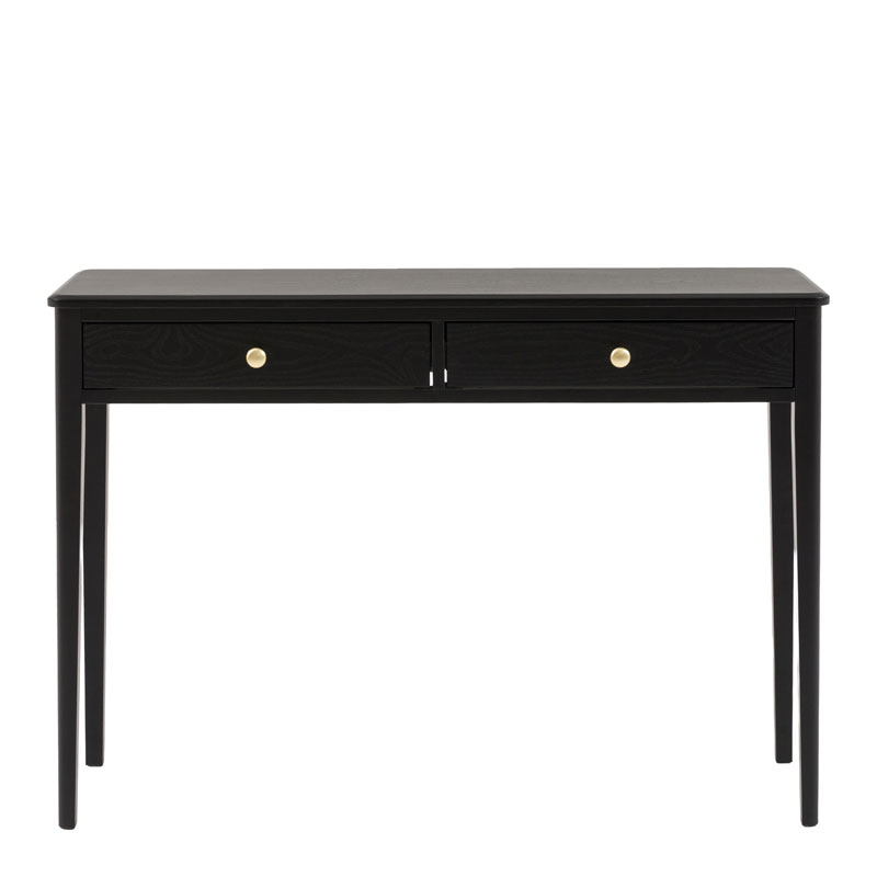 2 Drawer Black Wood Slim Console Table With Gold Metal Handles