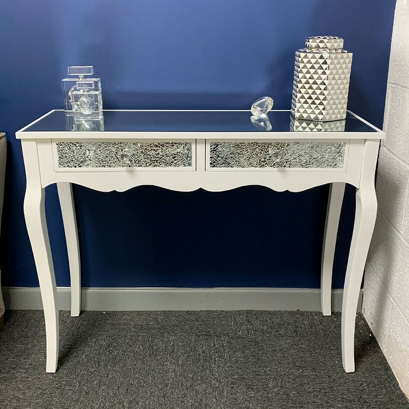 Boasting well-made shiny bevelled mirror panelling on top, this console table is ideal for opening up those dark narrow hallways or bringing that much needed light into your room. Whether you feature this as a wonderful statement piece or incorporate it as part of a wider home design of mirrored furniture, the White Console Table really is guaranteed to bring you the high-class feel you desire.