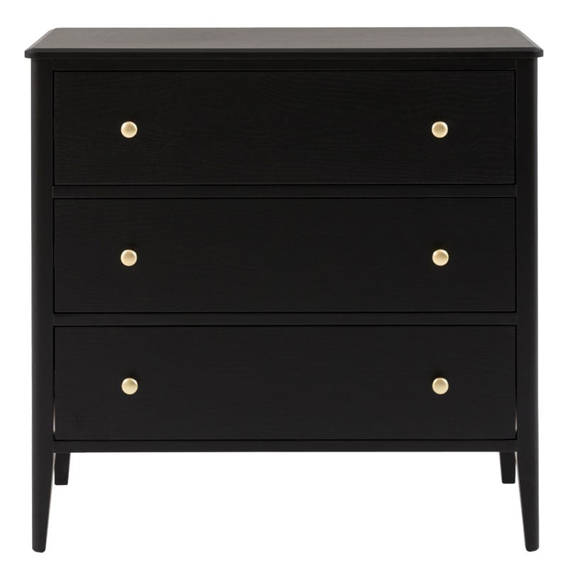 Why we love this 3 Drawer Black Wood Chest Of Drawers With Gold Metal Handles