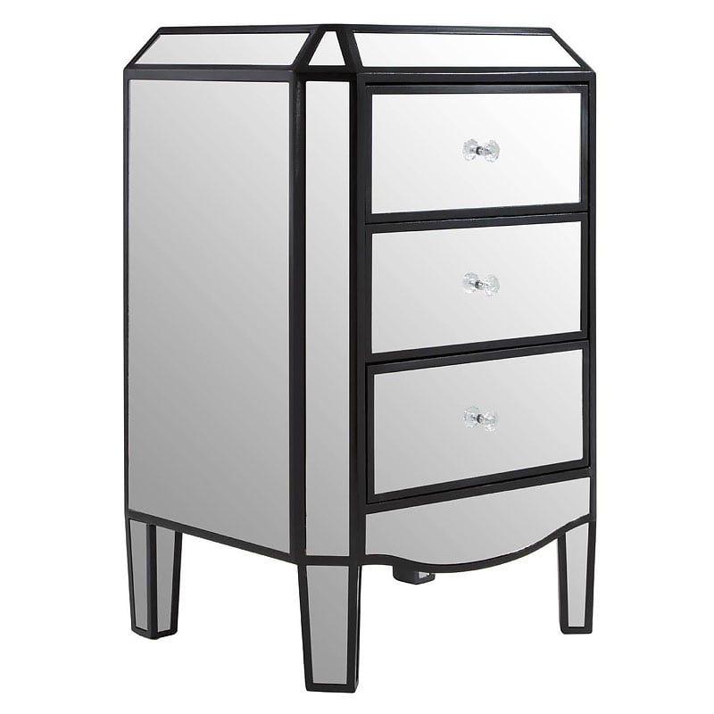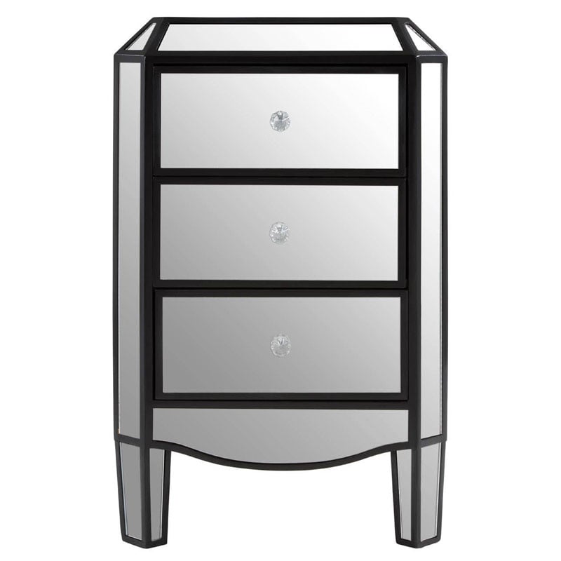 Art Deco Mirrored 3 Drawer Bedside Cabinet With Black Trim Detail