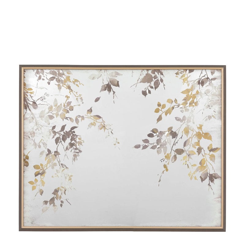 - A graceful study of nature, this piece features delicate leaves highlighted with shining gold foil embellishment on a mirrored background.