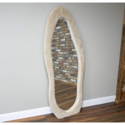It is a mirror that truly stands out. The soft beige faux fur frame brings texture, warmth, and a contemporary edge to your space. Its organic silhouette creates a harmonious and inviting feel while maintaining a bold, unique presence. It’s perfect for the bedroom, hallway, or as a trendy accent piece in the living room. The combination of clear glass and a distinctive textured frame makes this mirror a stylish statement that instantly elevates any interior.