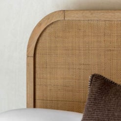 Bring a touch of rustic charm with this beautifully crafted bed; blending oak solids, veneers, and solid rubberwood timbers for durability and warmth. The standout feature being the natural hand-woven rattan panels on the headboard, adding texture and an artisanal feel. Finished in a soft lime-washed tone, the collection has a relaxed, lived-in character. Perfect for creating a calming, timeless bedroom space with natural beauty at its heart.