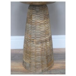 This mushroom style table is both versatile and interesting as it can be used as a small coffee table, side table when you have extra guests arrive, or to display a plant as a focal point. The magnificent natural wood detail and carving surrounding the table will be sure to stand out whilst adding a touch of beauty to your home. Made entirely using 100% Eco sourced solid natural mango wood by skilled craftsmen in India.
