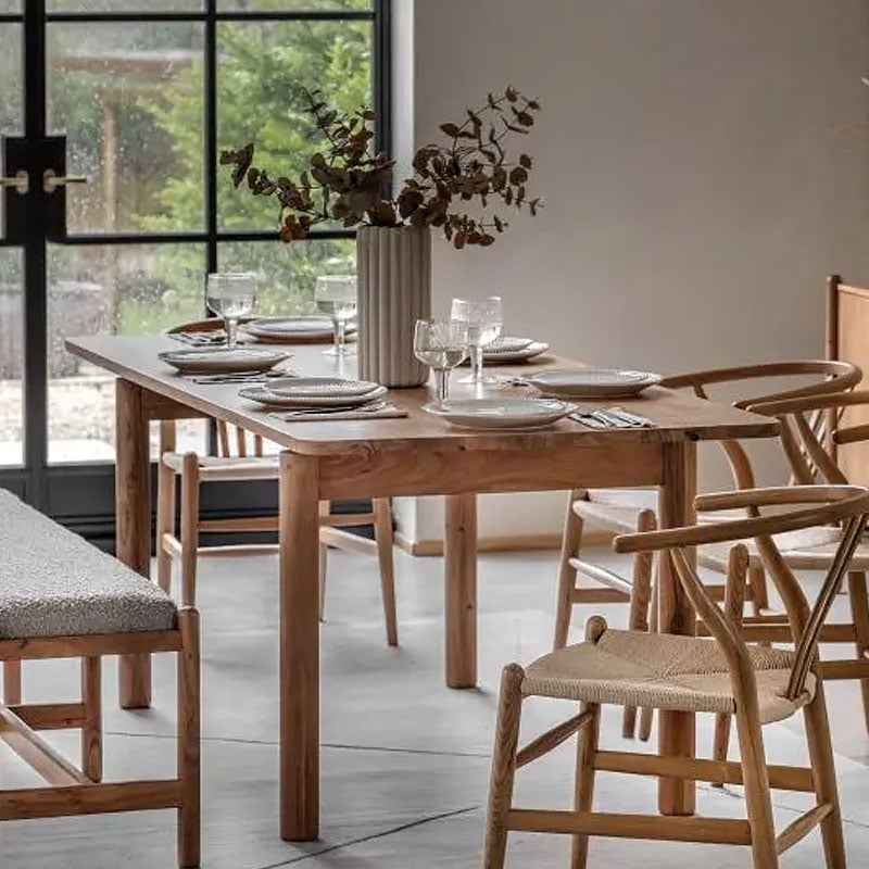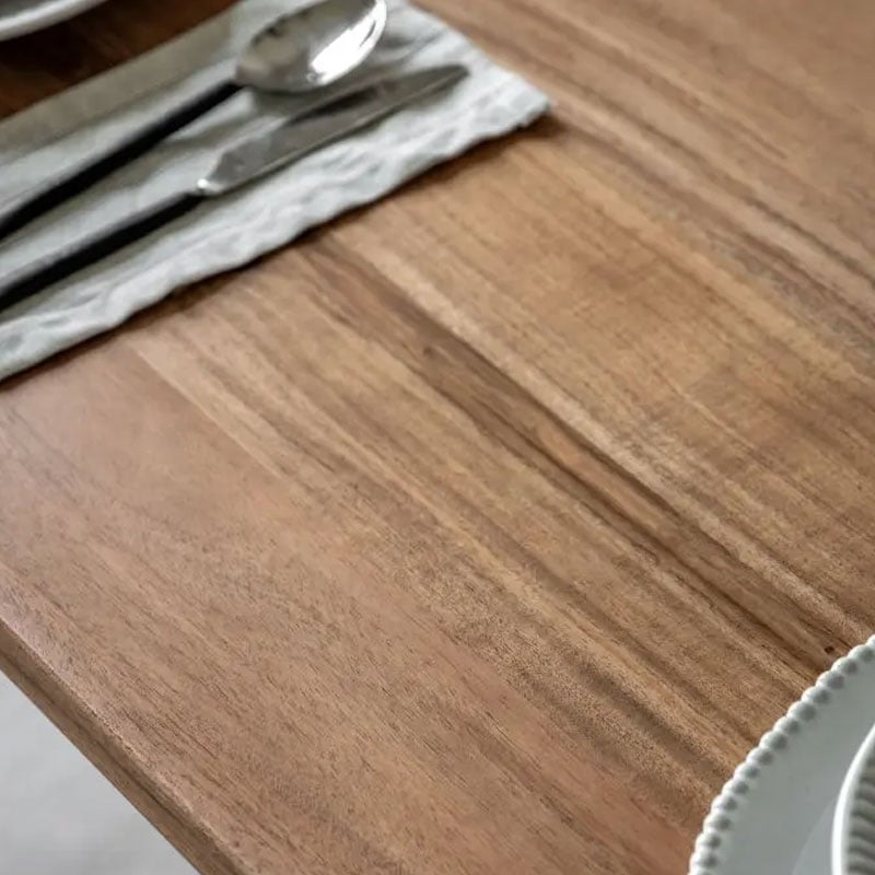 Combining retro style and a modern aesthetic this table will enhance any dining space, from vintage inspired to contemporary eclectic styles this fill fit right in. Made from richly grained Acacia wood this large table seats 6 – 8 people.