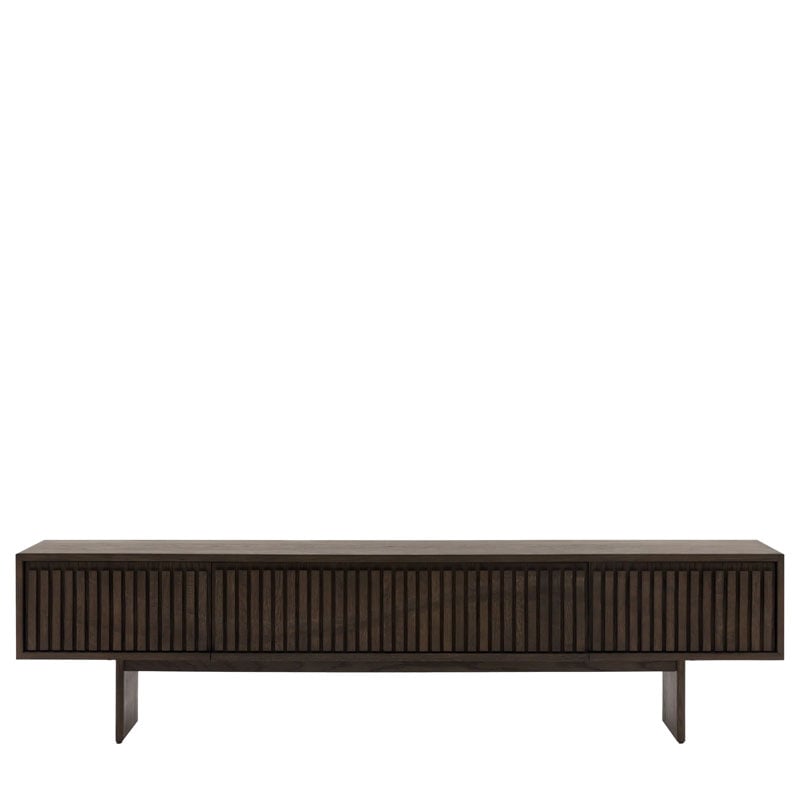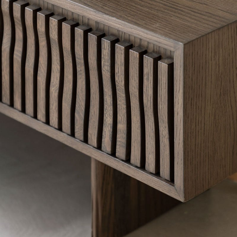 Effortlessly stylish thanks to its modern Italian influences, this media unit will enhance any living space. The rich, walnut brown finished oak solids & veneers show off the clean lines and slatted wave design on the cupboard doors. With plenty of storage for all your electronics, the media unit blends functional practicality and modern style.