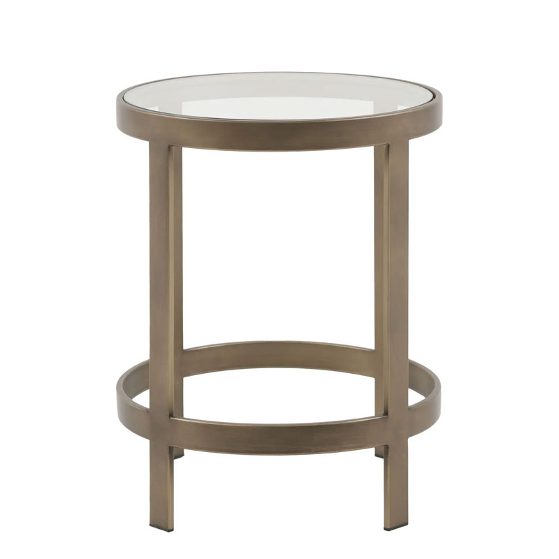 Why we love this Bronze Metal Glass Top Round Side Lamp Table