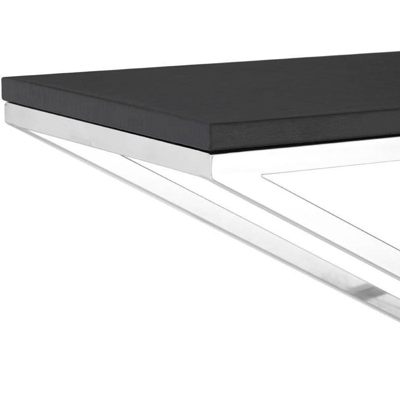 Why we love this Contemporary Cross Base Silver Chrome Steel And Black Faux Leather Large Rectangular Console Table
