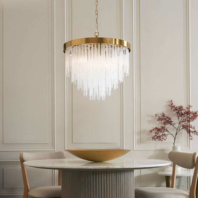 - The tiered design adds depth and sophistication, making it ideal for dining rooms, lounges and bedrooms, delivering both ambient illumination and refined style in equal measure.