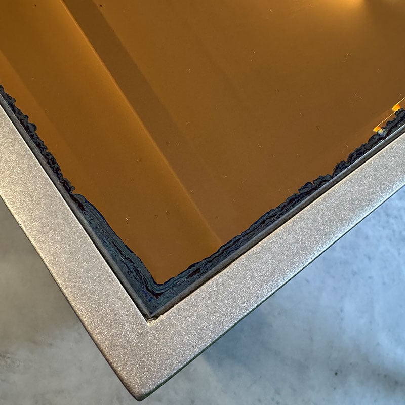 Copper Tinted Mirrored Top With Distressed Edges. Please refer to images on the listing.