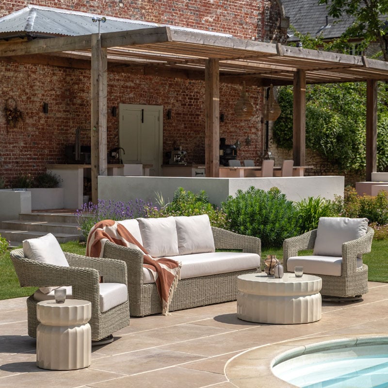 A standout stylish addition to any room, from living space to bedroom this side table won’t go unnoticed. The bold modern ridge pattern, sectioned top, and cream glazed finish make this a perfect piece for a contemporary home.