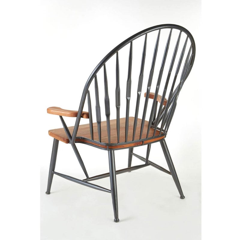 Why we love this Industrial Arched Spindle Back Black Metal And Solid Walnut Wood Armchair Dining Chair