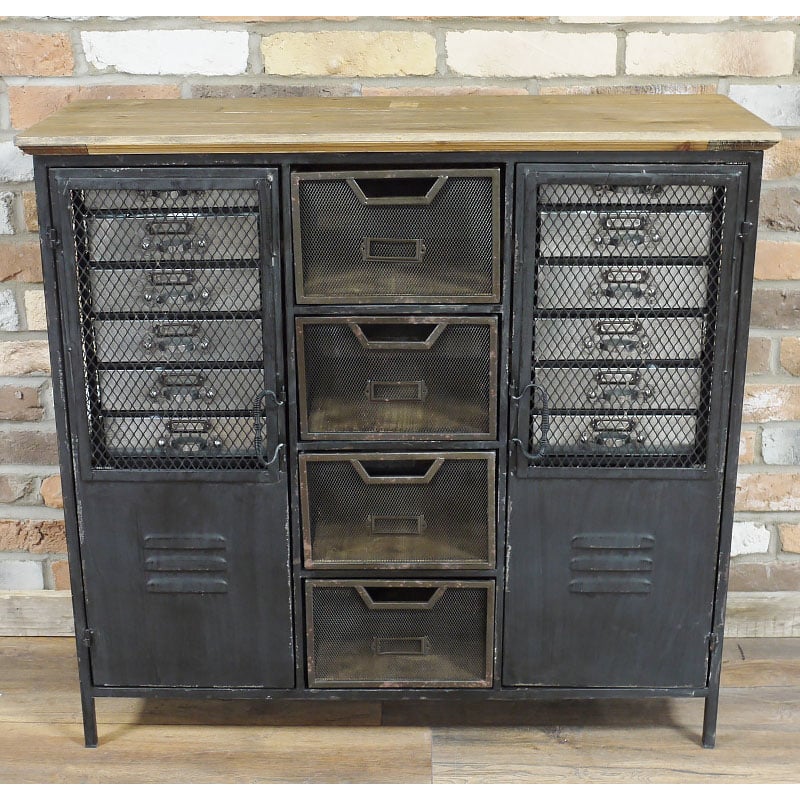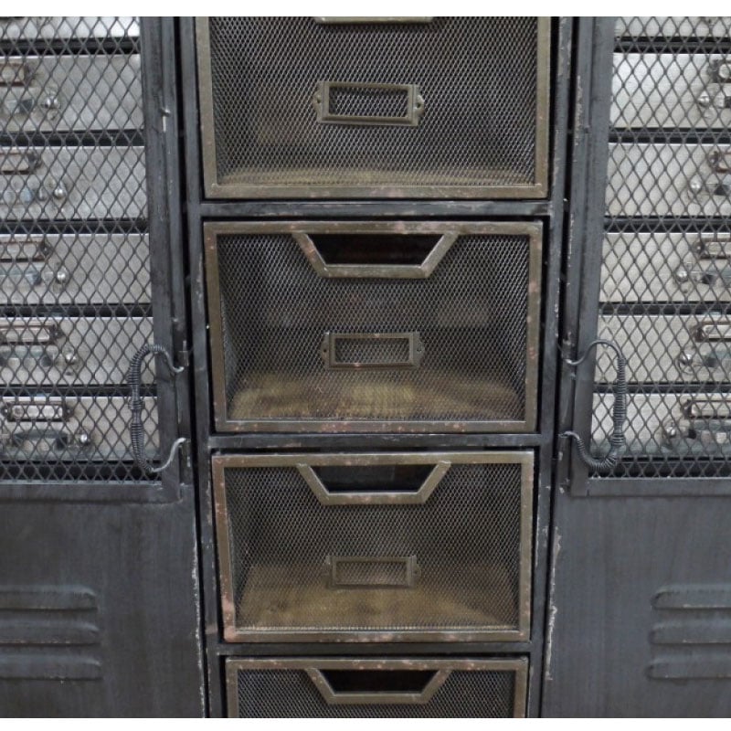 - It is a Rustic Industrial Storage Cabinet with 2 doors, 12 small drawers and 4 large drawers.
