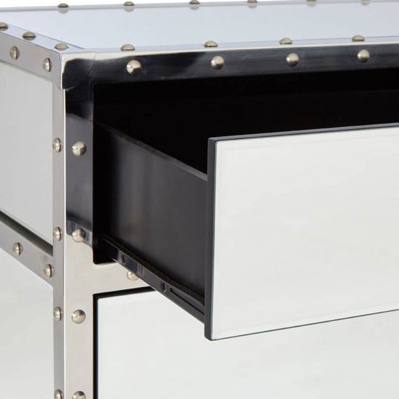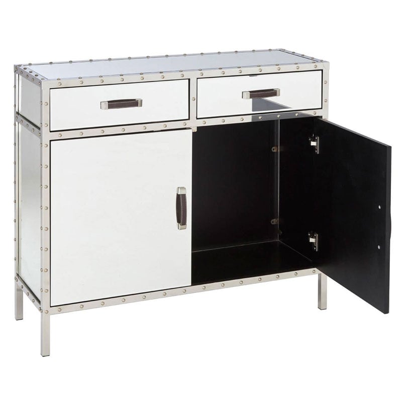 The sturdy unit is made from robust stainless steel ensuring durability for everyday use. This striking Rivet sideboard, with 2 drawers and 2 doors, provides a stylish storage solution for your home.