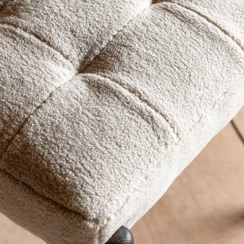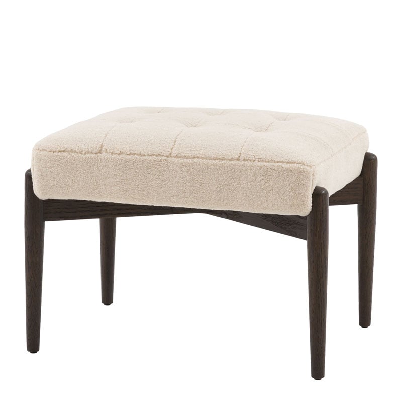 Why we love this Mid Century Boho Cream White Faux Sheepskin Fabric And Black Solid Oak Wood Footstool