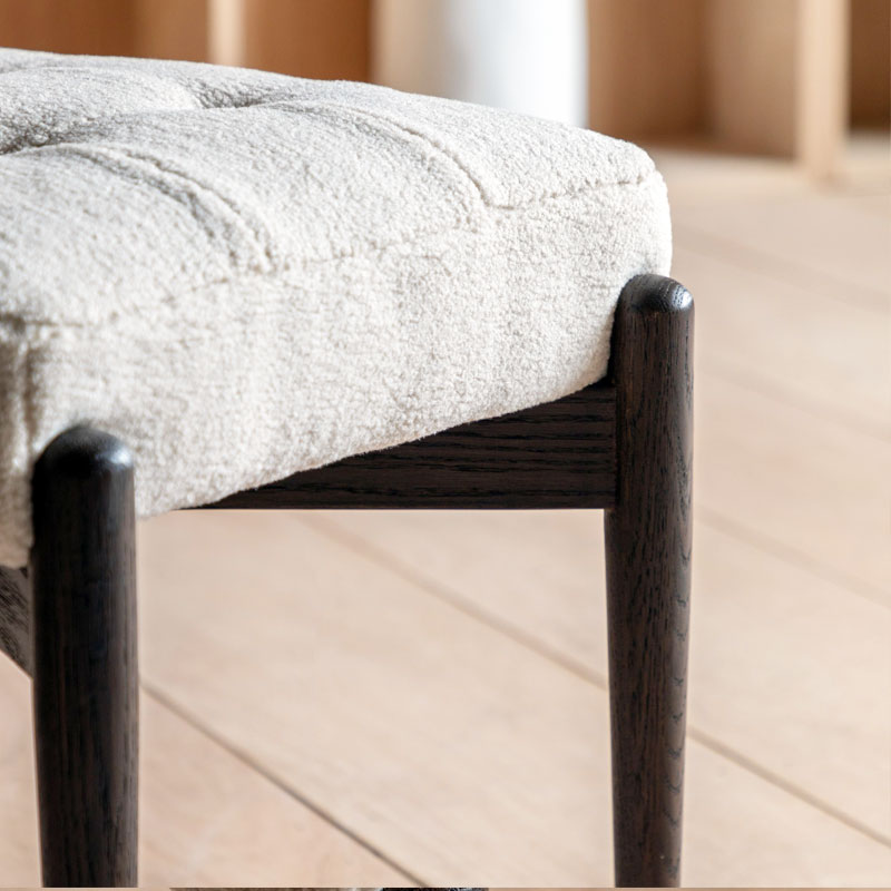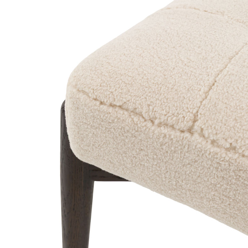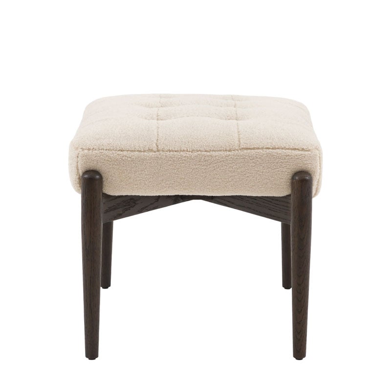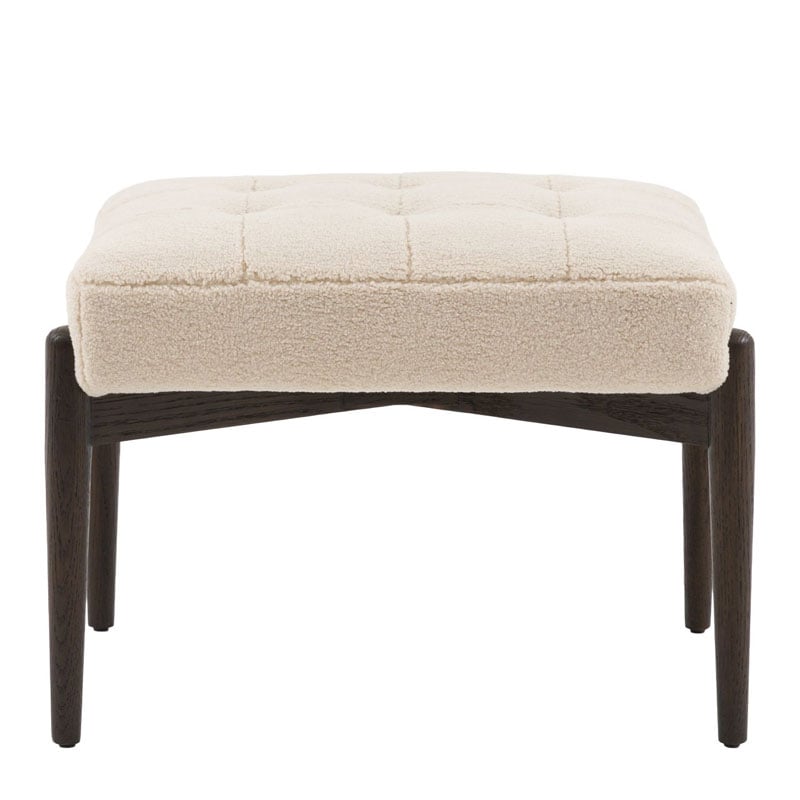 Mid Century Boho Cream White Faux Sheepskin Fabric And Black Solid Oak Wood Footstool