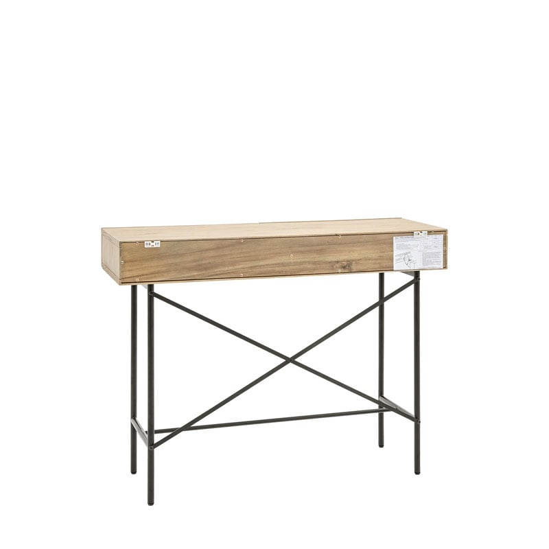 Retro Industrial Panelled Smoked Light Oak Wood And Black Metal 2 Drawer Slim Console Table 110cm