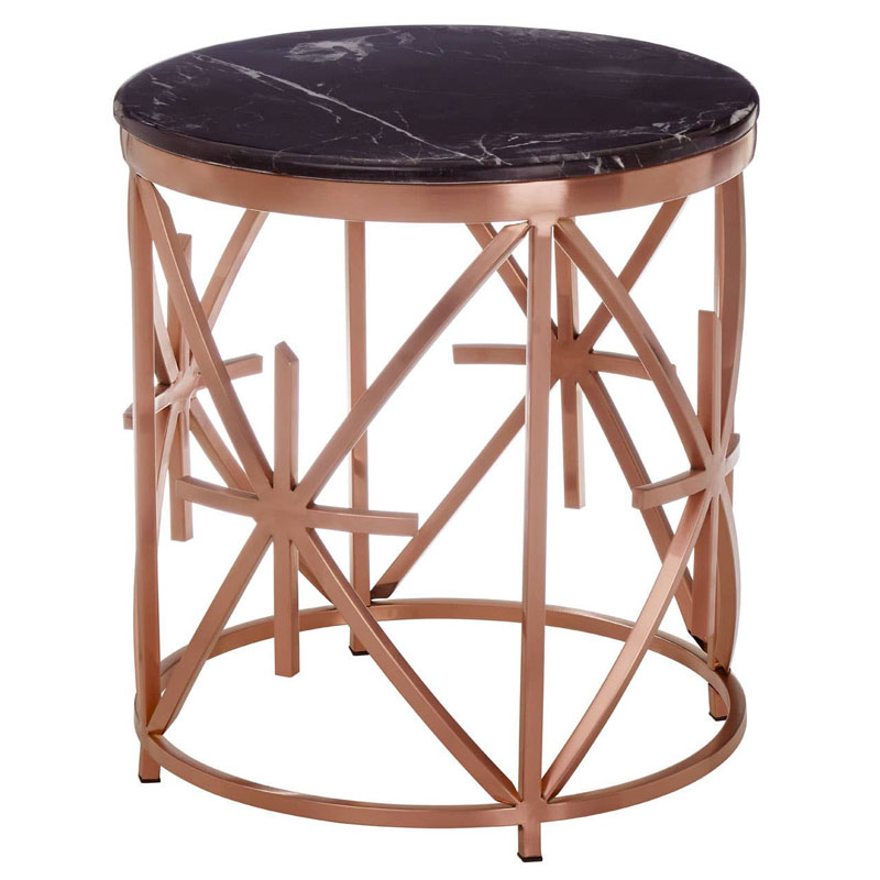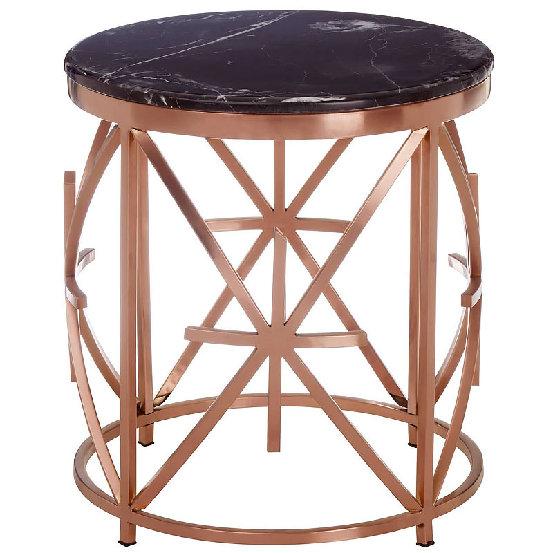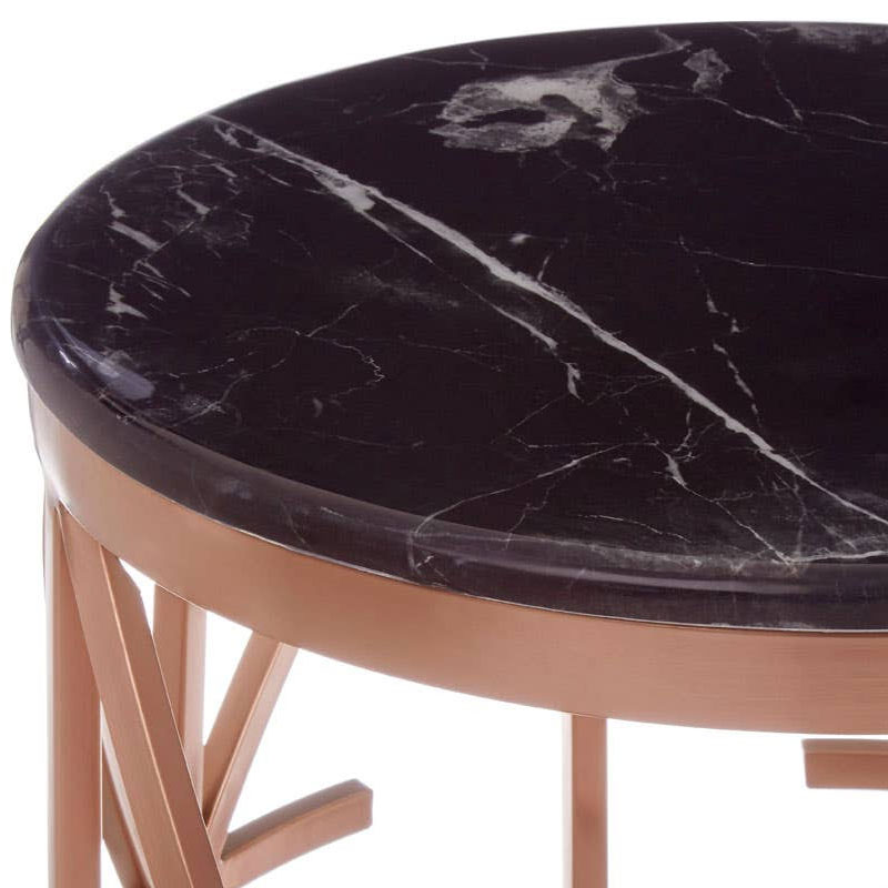 Rose Gold Metal And Black Marble Round Side Table End Table