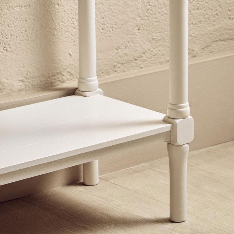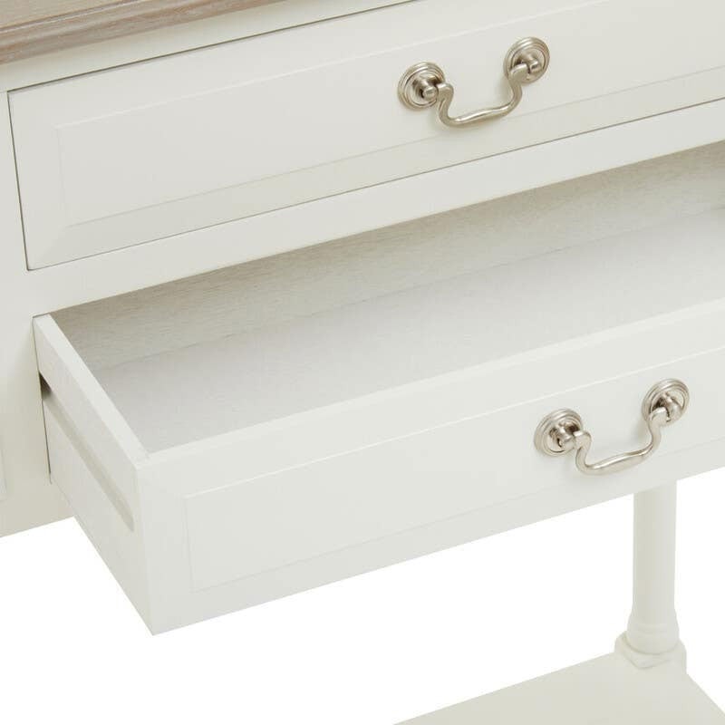 This four drawer console table pairs a clean rectangular top with a white base, offering a minimalist look to any living space. This four drawer console table makes a refined addition to any interior. Crafted from pine wood, it showcases a natural grain enhanced by a clean white finish that highlights its subtle detailing. Designed to offer style and practicality, this piece brings a timeless look to any setting.