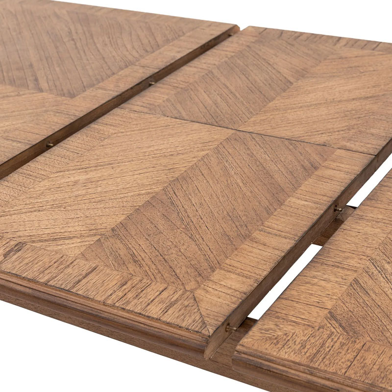 Designed to offer a ‘new traditional’ look with its timeless elegant style with a modern touch, this stunning table will add a sophisticated look to a room. The beautiful marquetry in a stunning rich tonal mid brown Mindy wood solids & veneers features inlaid book-matched details for an elegantly refined look. For added practicality the table has butterfly centre leaves, so it can be extended to seat up to 10 people.
