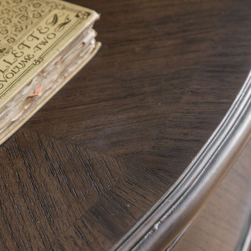 - Offering a ‘new traditional’ look, this stunning console table features beautiful marquetry in exquisite dark coffee brown Mindy wood solids & veneers, with inlaid book-matched details.