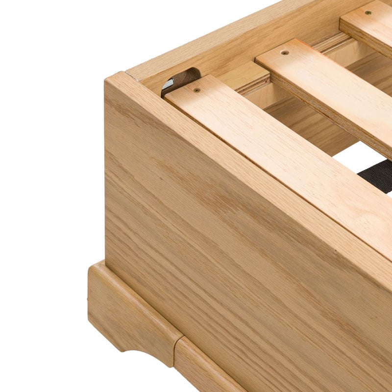 - The elegant, clean lines and beautiful natural wood finish, crafted with premium solid oak and veneers, exudes timeless style, seamlessly blending into both modern and traditional bedrooms.