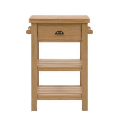 - With a solid oak top sturdy enough for daily use, 2 shelves, handy hanging rails and a drawer, this butcher’s block is a practical addition to any kitchen.