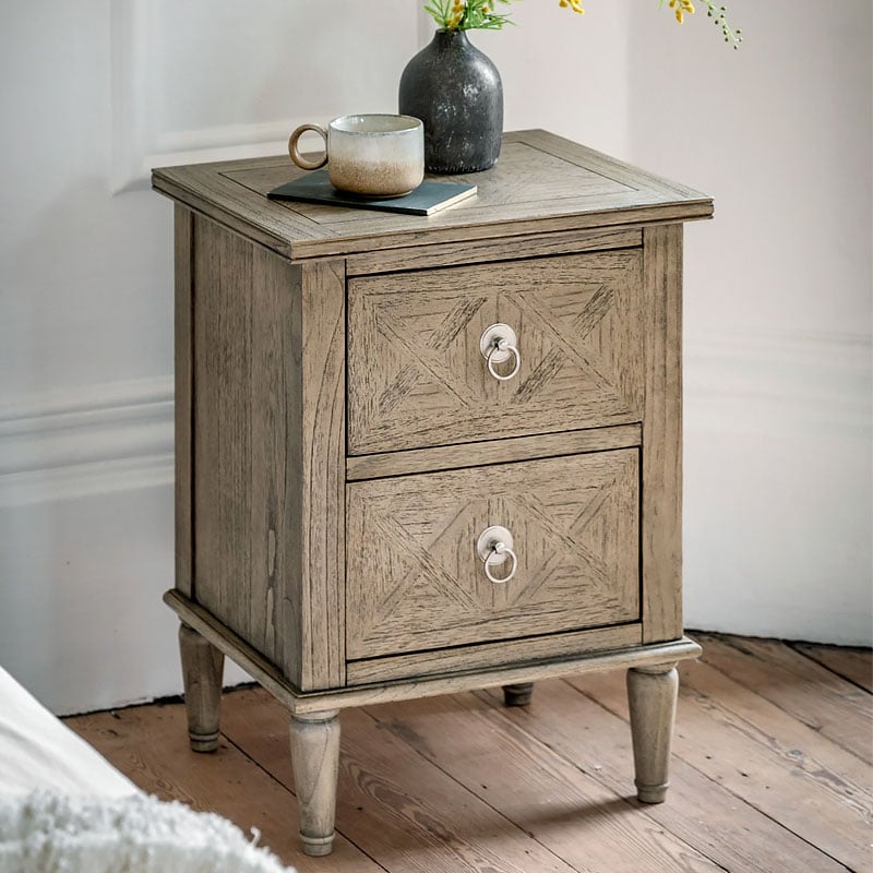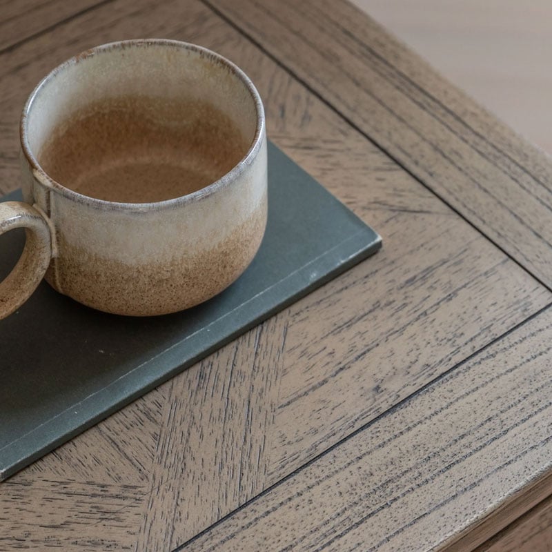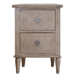 Made from Mindy wood and lightly brushed to recreate the natural ageing of a beach side veranda, open to the elements of sun and sand. The design and finish has a nod towards French Colonial style but would equally suit a modern interior. The drawer fronts and top feature the signature parquet-style design, with the doors having this as an inset centre panel to add an extra design feature. Crafted from Mindy wood with a stunning inlaid parquet-style design. The lightly brushed finish recreates the natural ageing effect. With its classy design and subtle finish, it offers versatile style that would suit a wide range of interiors.
