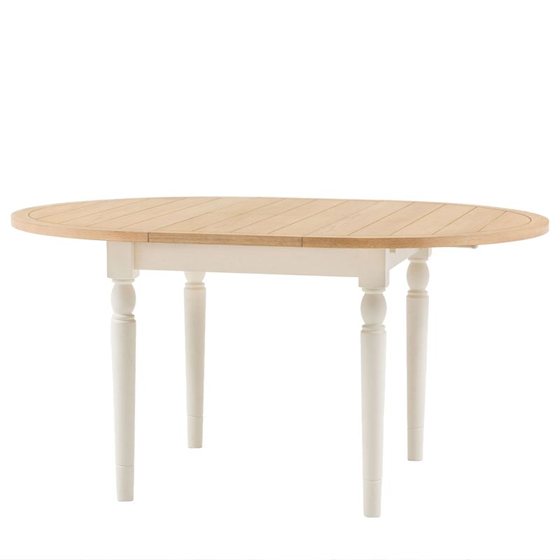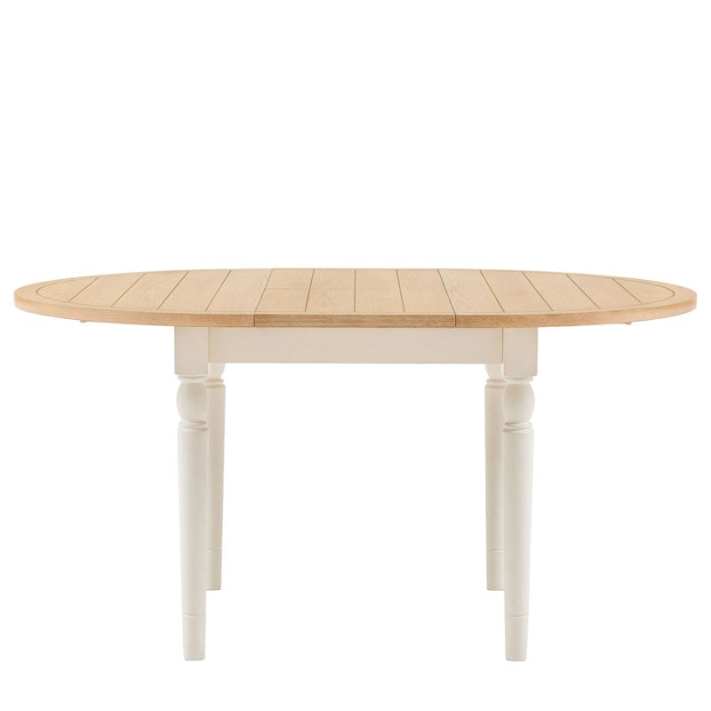 Rustic Country Farmhouse Soft White And Light Wood Extending 4 – 6 Seater Round Dining Table 110cm – 150cm