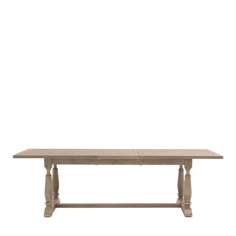 The design and finish has a nod towards French Colonial style but would equally suit a modern interior, this extending dining table adapts to your needs extending from 2000 to 2500 x1000x750mm The top features the signature parquet-style design. Crafted from Mindy wood with a stunning inlaid parquet-style design. The lightly brushed finish recreates the natural ageing effect. With its classy design and subtle finish, it offers versatile style that would suit a wide range of interiors.