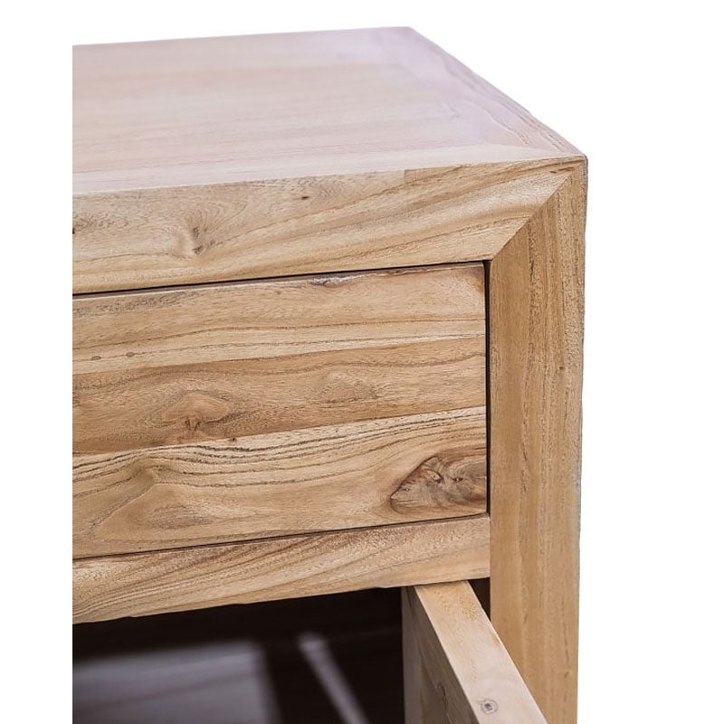 Add a rustic touch to your living room with our Rustic Country Farmhouse Solid Light Reclaimed Elm Wood 2 Drawer 4 Door Large Sideboard. Crafted from solid, reclaimed elm wood, this sideboard features two spacious drawers with wooden runners and black metal handles for a vintage look and two cupboard compartments hidden behind 4 doors. Two spacious solid elm wood shelves inside the cupboards.