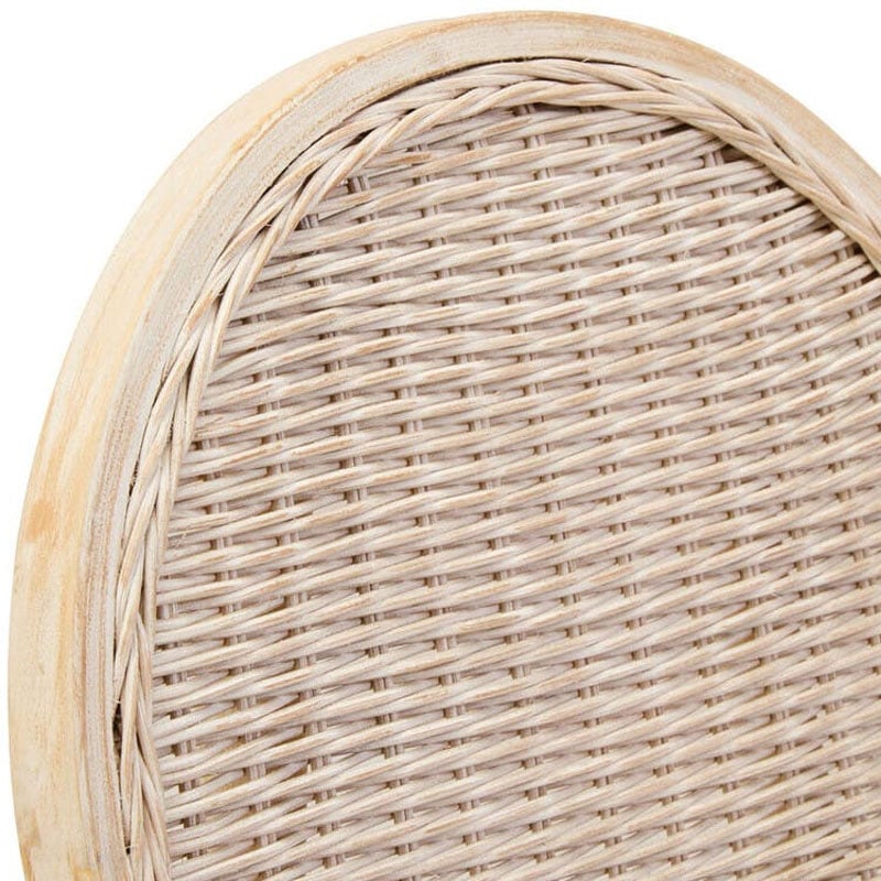 Why we love this Rustic French Country Bistro Rattan Cane And Solid White Washed Elm Wood Dining Chair With Beige Fabric Upholstered Seat