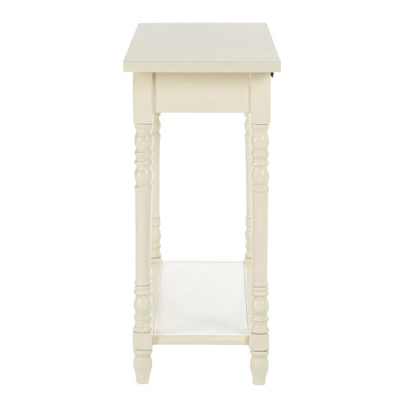 Rustic Ivory White Pine Wood 2 Tier 2 Drawer Slim Console Table With Turned Legs