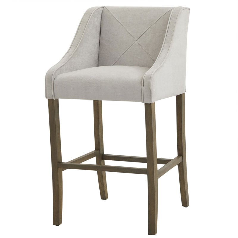 Upholstered in a light grey woven fabric that will tie in with any number of décor schemes, this barstool exudes an effortless “quiet luxury” that is so sought after across fashion and interiors alike right now. Its rubberwood frame, known for its dense grain and strength, is the perfect choice for its intended everyday use. Upholstered in a light grey woven fabric that will tie in with any number of décor schemes, this barstool exudes an effortless “quiet luxury” that is so sought after across fashion and interiors alike right now. Its piped details add to the luxe look.