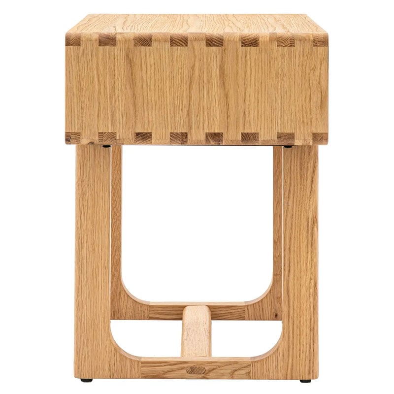 This stylish bedside is crafted from the finest oak and oak structural veneers where practical, with a lovely natural finish. Dovetail joints on the drawer and finger joints, a technique used on only the finest cabinetry, on the exposed corners give strength and a sense of purpose and tradition to create long-lasting, legacy furniture that can be collected and handed down through generations.