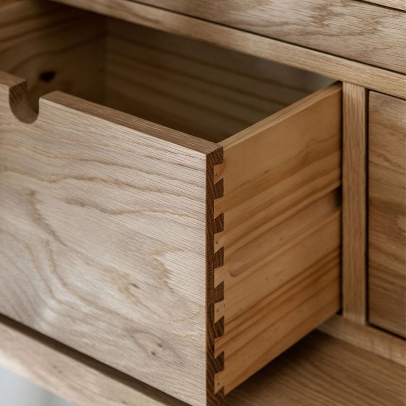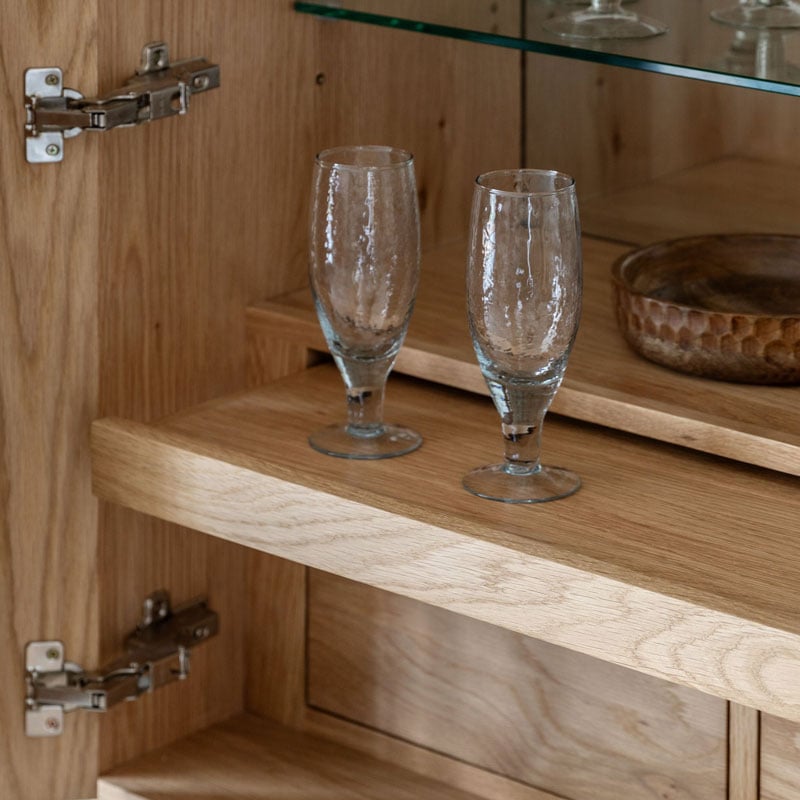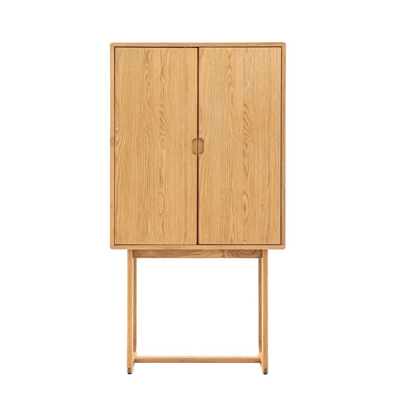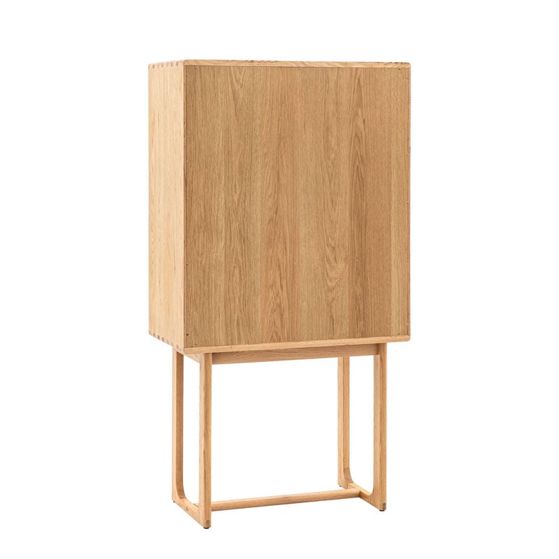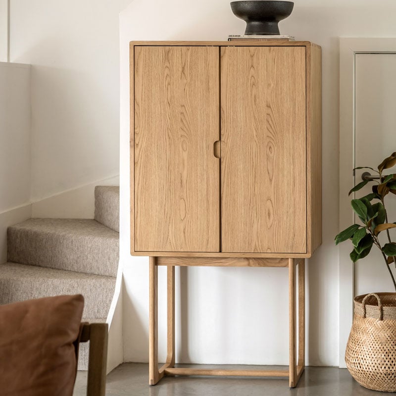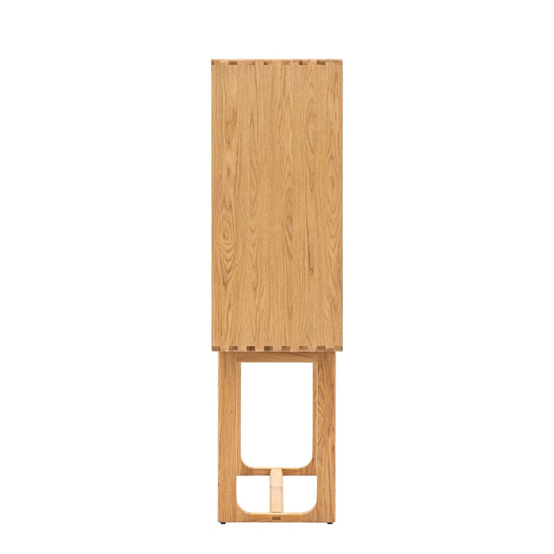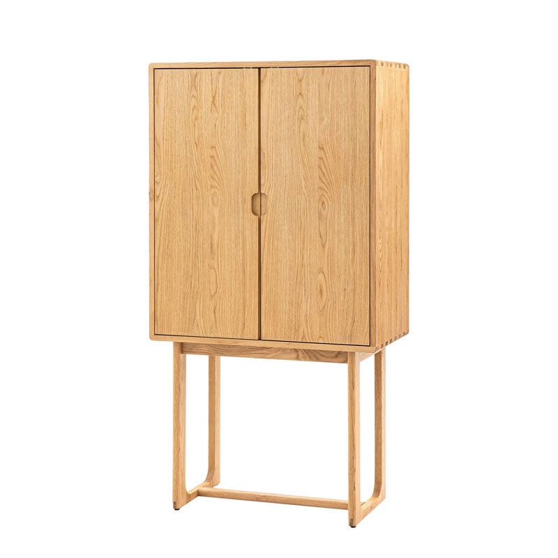 With its cut-out handles and beautifully shaped underframe, this lovely cocktail cabinet offers stunning design. It is crafted from the finest oak and oak structural veneers where practical, with a lovely natural finish. Finger joints on the corners of the piece, a technique found on high quality cabinetry, give strength and a sense of purpose and tradition to create long-lasting, legacy furniture that can be collected and handed down through generations.
