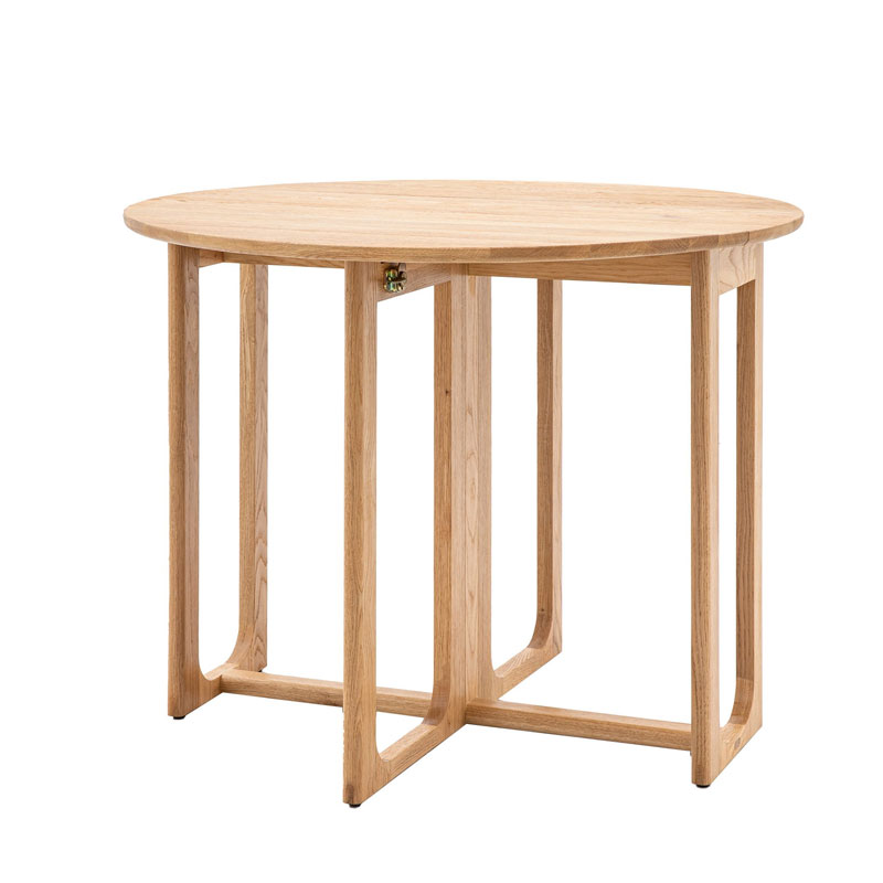 Rustic Scandi Japandi Light Oak Wood 4 Seater Round Folding Dining Table 100cm