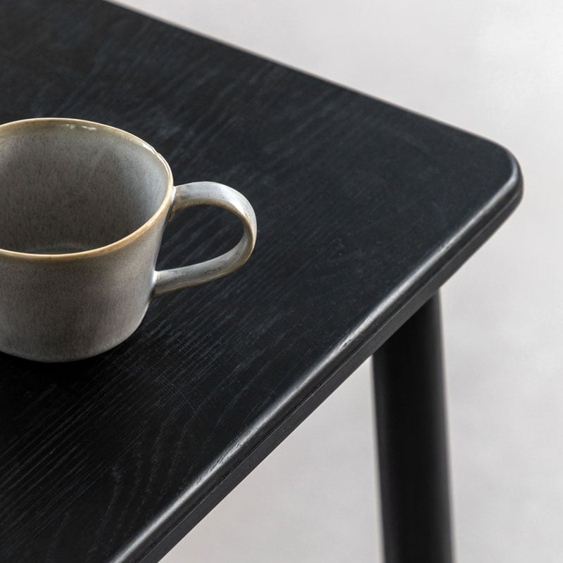 This 2 tier spindle lower shelf rustic scandi japandi square side table is made from the finest solid black oak creating the contemporary aesthetic colour palette that is the essence of Nordic style.