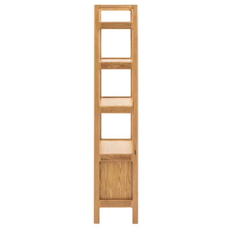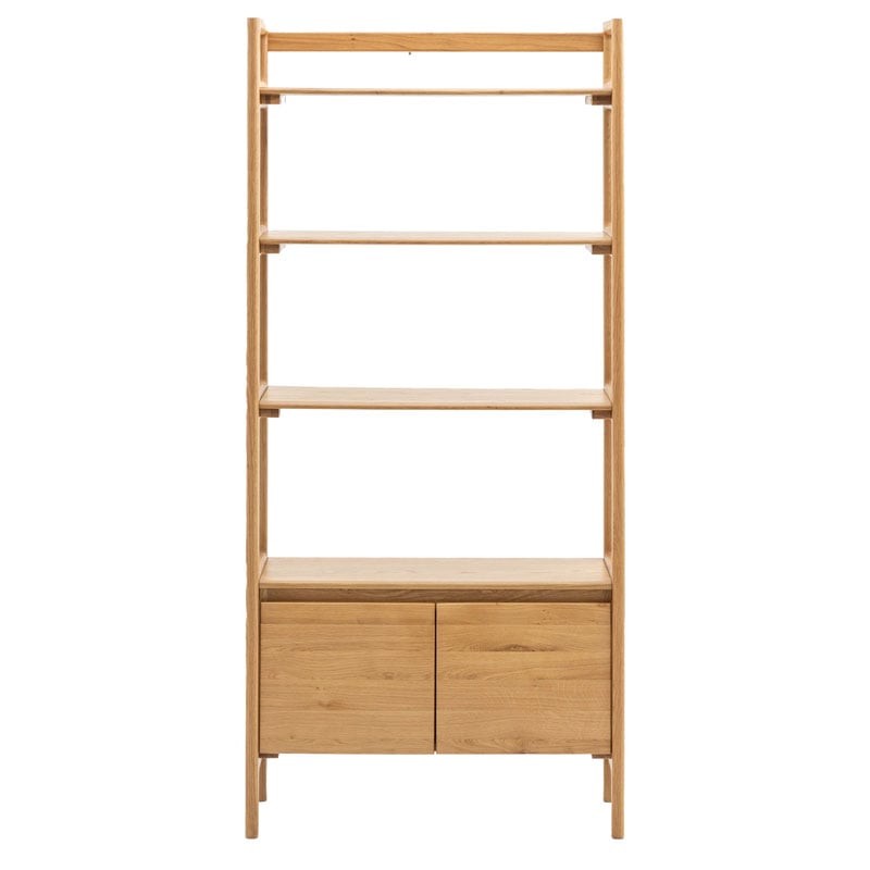 With a strong elegant design, this Rustic Scandi Japandi Solid Light Oak Wood 4 Tier 2 Door Bookcase Shelving Display Unit Cabinet is a true showstopper. Constructed from solid European oak. Finished in natural light oak. It features 4 open shelves and one large cupboard hidden behind 2 doors.