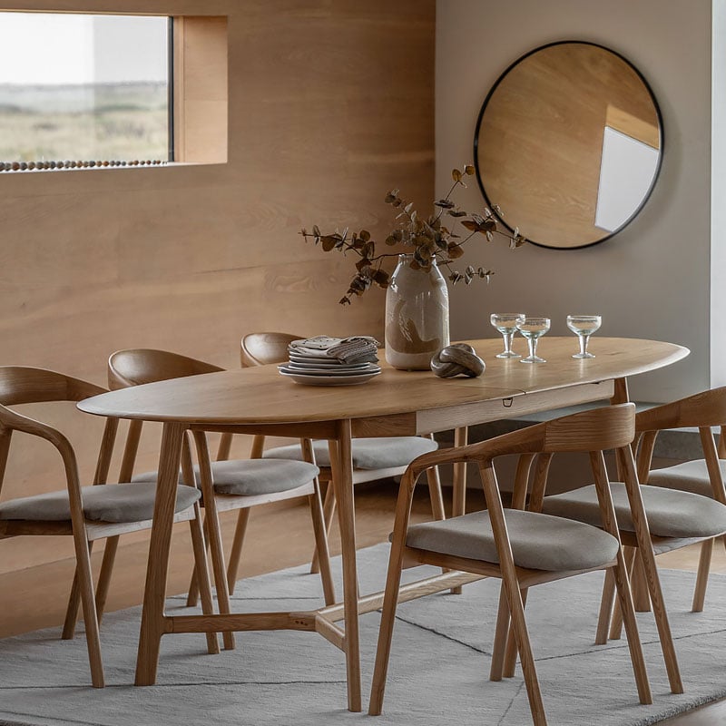Why we love this Rustic Scandi Japandi Solid Light Oak Wood Extending Oval 8 Seater Dining Table