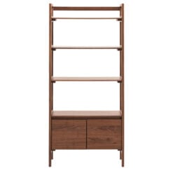 • With a strong elegant design, this Rustic Scandi Japandi Solid Walnut Dark Brown Wood 4 Tier 2 Door Bookcase Shelving Display Unit Cabinet is a true showstopper.