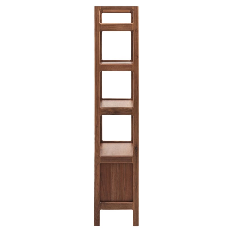 Rustic Scandi Japandi Solid Walnut Dark Brown Wood 4 Tier 2 Door Bookcase Shelving Display Unit Cabinet 172cm