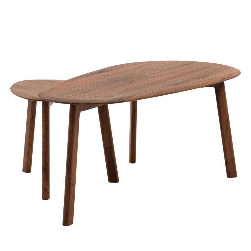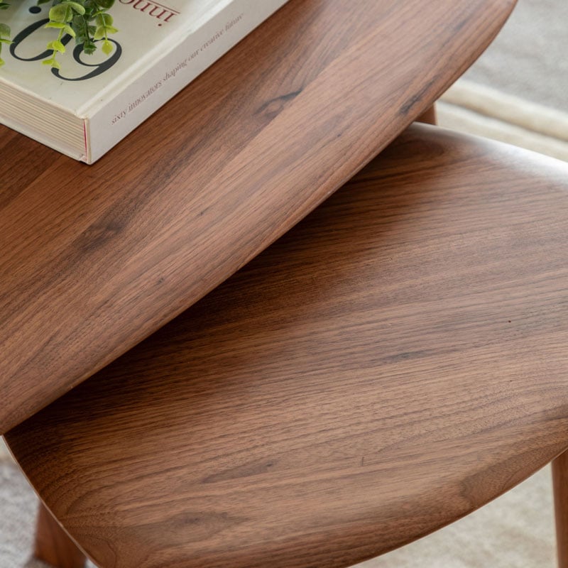 This coffee table nest is a stylish and functional addition to any living space. This set of two tables features organic, oval shapes and tapered legs that create a modern and minimalist look. The smaller table can be tucked neatly beneath the larger one when not in use, making it a space-saving solution for smaller rooms. Perfect for displaying decorative items, serving drinks, or simply adding a touch of Scandinavian style to your home.