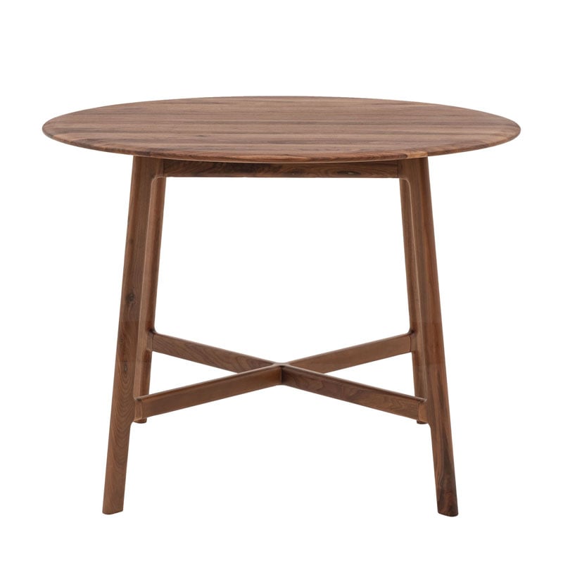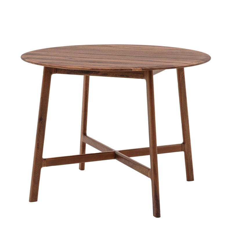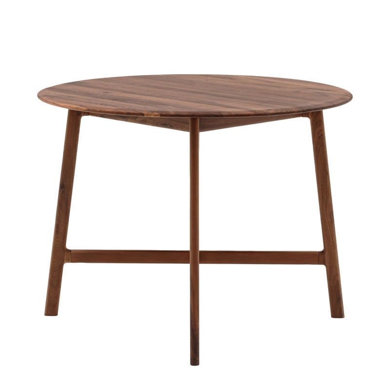 Rustic Scandi Japandi Solid Walnut Dark Brown Wood Round 4 Seater Dining Table 100cm