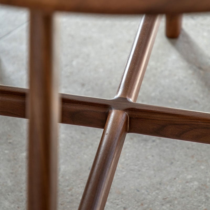 Why we love this Rustic Scandi Japandi Solid Walnut Dark Brown Wood Round 4 Seater Dining Table