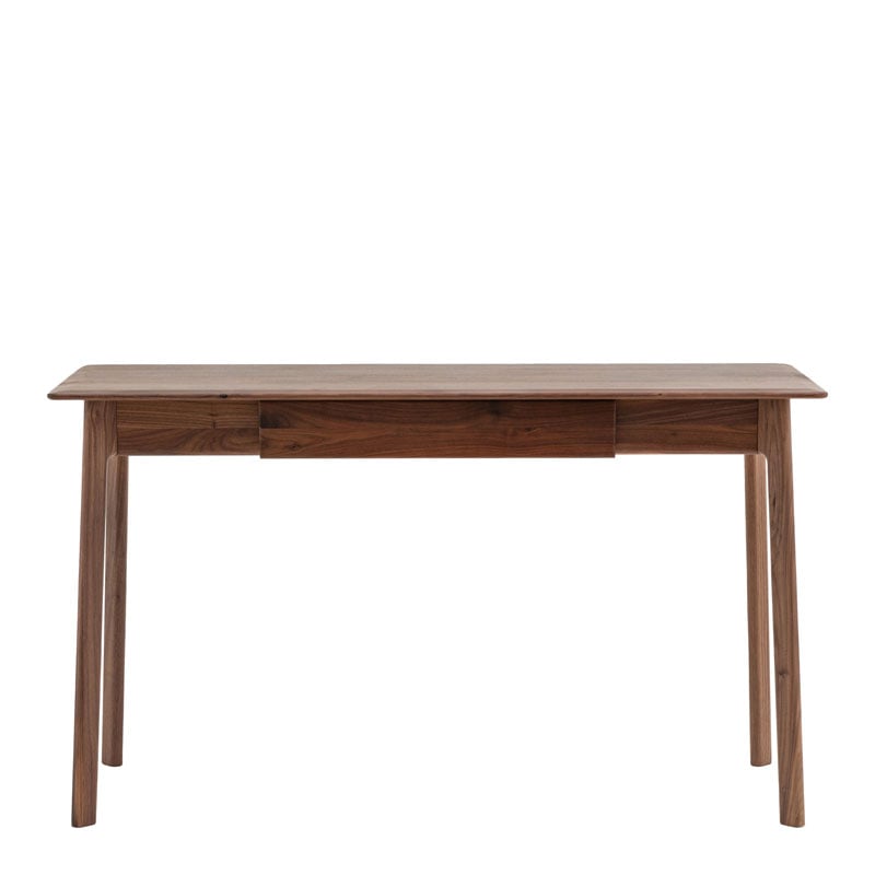 - With its strong elegant design, which takes influence from mid-century and Scandinavian style, this desk features tactile soft edges and a practical drawer.
