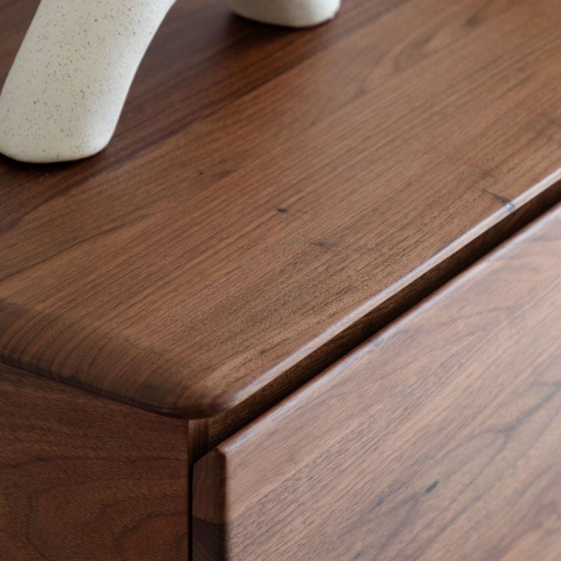 Why we love this Rustic Scandi Japandi Walnut Dark Brown Wood 2 Door Small Sideboard