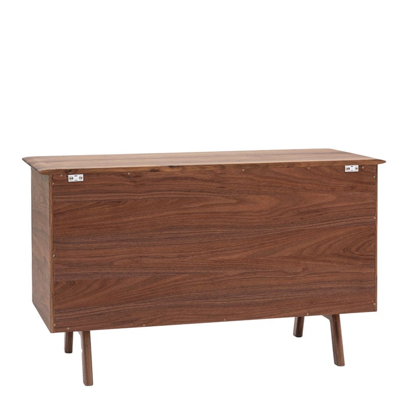 Rustic Scandi Japandi Walnut Dark Brown Wood 2 Door Small Sideboard 116cm