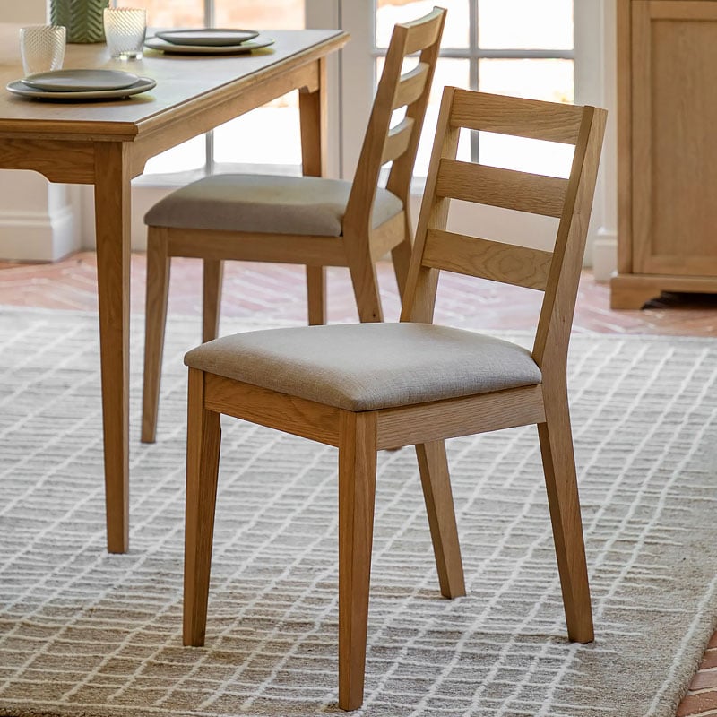 Set Of 2 Rustic Country Farmhouse Light Oak Wood Ladder Back Dining Chairs With Upholstered Seats