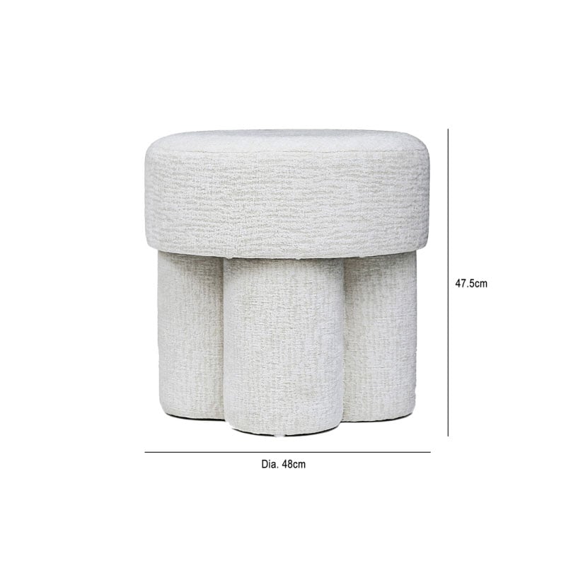 Textured Chenille Upholstered Cream Round Stool Footstool Ottoman 48cm
